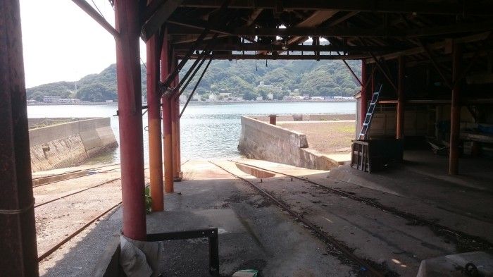 牛深、久玉の明石の先っぽにある風景! 日本遺産登録にどうでしょうか?造船所跡です昭和の時代の造船所、整備所、修理場?昔の船は、木造船でしたから!何か 、 懐かしい風景です