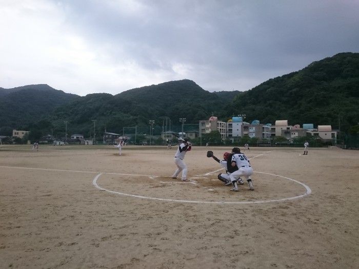 軟式野球です!まぁ、牛深代表の予選も兼ねてます30年位前までは 牛深に8チームありました日曜日の朝から始まり、3試合など行いましたみんな、若かったけど!さて、若者たちと対戦しました審判は、40歳以上のチームの監督さんが務めました相手は、18歳から それなりのチーム編成若いから、スイングが早い、シャープに振る55番、高校野球経験者です打球が早い、今年から、軟式野球の使用球が変わり、飛ぶし跳ねる、やや重くなってますお年寄りチーム ヒットで出塁、さぁ」盗塁? 無理ですね エンドラン、無理ですね?何と? ヒット、エラーで 3塁まで行ったよスクイズだ、でも ランナー、息切れで無理、無理ですね若者チーム デカいホームランで先制!その後、村長さんも出ましたが エラーをしました。また、エラーを!う~ん 年には勝てないね?試合終了後は 懇親会です 若者から、自己紹介を 年齢、職業、おやじの名前?何と、同級生の息子もいた、村長さんも 年齢は 還暦です!(大爆笑)若者、おいが父ちゃんより、年上? 懇親会は 年寄りチームがリードしました。 飲み会は 勝利しましたよ でも 野球を出来ることは 良いですね還暦チームでも作るか?参加者が、いま~せん! 残念!PS、試合中、守備中、ベンチが空っぽ中 ベンチに、小さな変なおばちゃんが入ってきた 物色してました、物取りかも? 気を付けましょう!