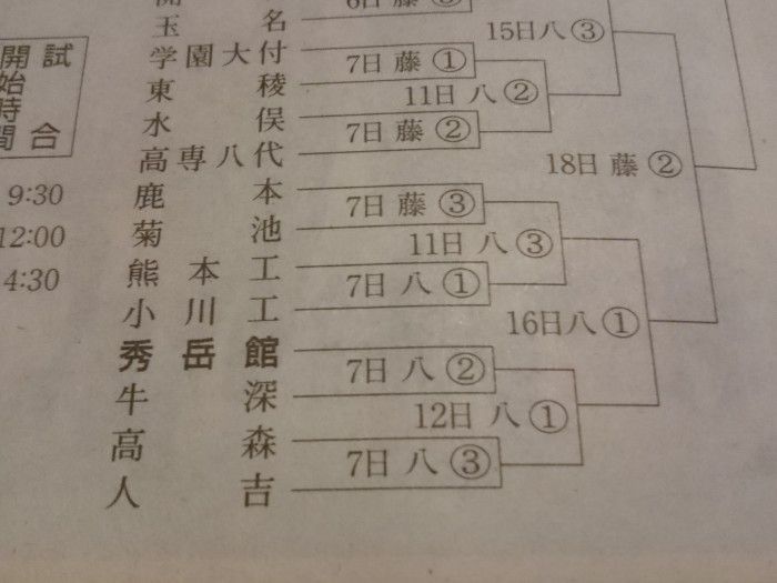 夏の甲子園への道熊本県予選の抽選会があり7月1日、開会式牛深高校の1回戦の相手が決定しました7日(土) 八代県営野球場 第二試合 12時開始予定です何と? 秀岳館高校です。 (熊本日日新聞参照)昨年の代表校です牛深魂で、勝て 勝て!数年前も、熊本工業にあわや勝つ所まで行ったが、残念でしたまた、今年も、また、旋風を起こせ!新入部員も5人入り、15名に がんばれ 牛深高校野球部!