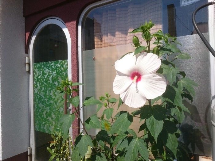 タイタンピカスですふようの仲間ですね毎年、7月1日ピタリに開花しますが、なぜか?早いです なんか? デカい台風の予感?いま、養殖をしてます『養鶏』では無く、『養雀』です!パンくずで養ってます 多いときは、27~30羽ほど来ます今朝は、私の寝室の窓の手すりでさえずりました 『早よ、起きて来て、パンくずをくれ!』 網戸を叩く事も!『港に、帆船が来てる』と 母上様 にっぽん丸? 海王丸?あぁ、帆船 ヨットの間違いかな?今夜から時化るから、避難かな?明日から、梅雨に戻るみたい、湿気が心配ですね京の最高気温、30,2度でしたが 日差しが強かったです
