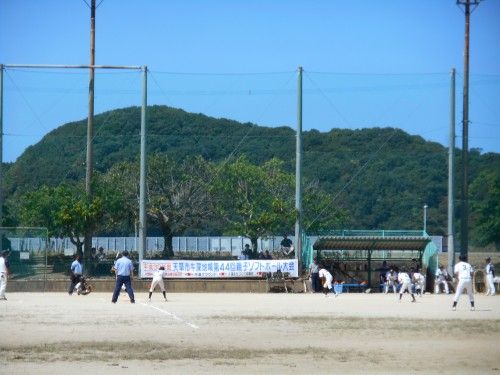牛深地区子供会対抗、 親子ソフトの大会が開催中です、満塁のチャンスで ! ファールボール!今度は集中してます7回戦で、子どもたち4回、親が3回です親の攻撃で、9アウトしかありません アウトになれば、ブーイングが大きくなります牛深、快晴で 最高気温33.7℃でプレー中でした