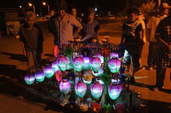牛深、久玉町明石にて、精霊流しです昨年は、雨、雷で 早めの進行でしたが今夜は、 星空でした1番目の到着顔が出た人、スミマセン!もう、乗船させました船上で待機次の精霊船が来ました提灯へ火を入れます船に乗せます無量寺の精霊船が来ました三段の提灯ですこの数だから、電気かな? 正解ですね若手で浮き桟橋へ降ろします精霊船を引っ張る船に横付けしました和尚さんのお経ともに出て行きましたえい航が始まりましたあちゃ、ボケてしまいました、スミマセン!以上、久玉の精霊流しでした