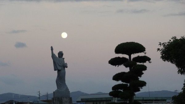 お月様が、まんまるだ!牛深、岡東からです18時57分海彩館から、音楽が流れる 移動したでも、お月様が気になる ハイヤのお姉さんと、ツーショットで カシャ19時02分聞こえる音楽が ベンチャーズメドレーだ 夕陽コンサートが開催中でした夏の夜市が別会場ですから、別れてるのだ19時09分です今から、皆さん出陣で来るのかな?明日が、旧の15日で月の夜で 16日がまんまるのお月様です