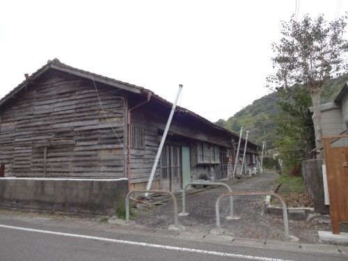 牛深の街中、外装内装工事が増えてます都市計画から、約40年、痛んでます村の前でも 2階建ての木造の家を平屋へ改築ですまず、昨日の写真 小さな駄菓子屋でした朝から、工事が始まり!2階のサッシ、手すりなど外していきますお昼には、足場が組まれ、瓦降ろしが始まりました。3階から、撮影、夕方には、2階部分は、柱だけになりました木造の解体は、早いですね 所有者の、許可頂いてます。一部解体して、浄化槽などの取り換えなどあります街中の改装工事が多く、足場を組んでありますから交通安全で運転で宜しくです
