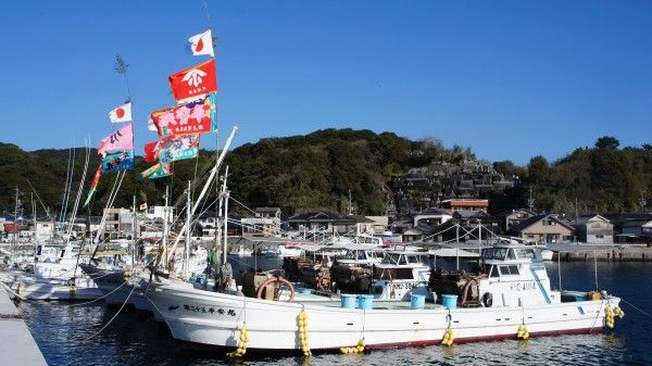 元旦、曇り空 10度です 風が冷たいです帰省客も多いみたいです空き地には 県外ナンバーが多いです大型スーパーは開店してます牛深八幡宮の参拝者も出てましたお仕事の船には、大漁旗が !取る漁業も 育てる漁業も 大漁(あかね)で ありますように