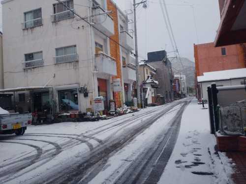 牛深も雪景色ですが4cm~5cmぐらいかな?久玉からの タイムの客人、普通に走れたと!チェーン規制は坂道の何か所かですね(ハイヤ大橋も)天附の坂道、加世浦の坂道は登れないかも?街中には、タイヤの跡がある 慎重に走っているみたい新雪を歩くと、キューキュっと音がする市役所の軽トラは、チェーンを装着して走ってた牛深、他の地区の情報がありません am 9:54頃