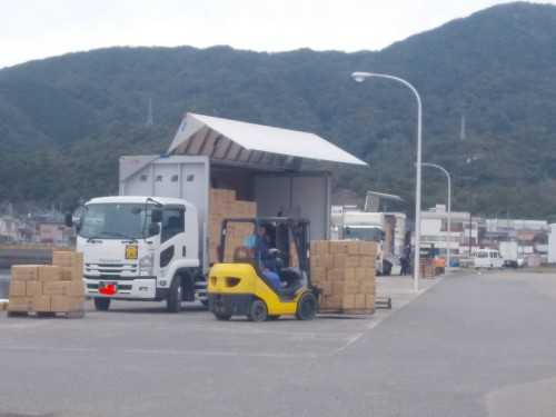 久玉の明石地区へ港にて、水産加工品をトラックに積み込み中、美味い削り節と書いてあった牛深の雑節が日本一だと!関東、関西方面へ出荷されるのかな?水産加工場へ行くと、ハウス? 倉庫?あ、事務所かな?従業員さん達の部屋だそうだ二つのハウスを合わせて ワンルームにもう一つをプラスしたら(バストイレ、キッチン)で小さな住まいになるという村長さんの隠居部屋にGoodですねトレーラーで運ぶと、転居が簡単です