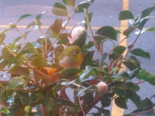 店内から、窓越しにカシャ 久しぶりに飛来しました窓ガラスが熱を通さないため、昼間は鏡状態ですから、メジロからは見えませんみかんを餌にしてます