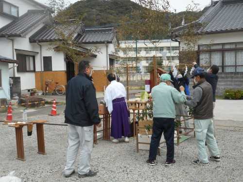 地鎮祭をするから、撮影をお願いと!10時からと!でも、準備風景から大工屋さん、左官屋さん、電気屋、水道屋さんと皆様で準備をオーナーさんが、『牛深の人達にお世話になってますから 地元愛で 牛深人で家を建てます』奥様も確認中祭壇も撮影式次第もあります地鎮祭が始まりました地鎮之儀 『鍬入れの技』神主さんから、『エイ、エイ、エイの3回目で入れて下さい』オーナーさん、エイ、エイ、エイで入れた、 早い、速攻の鍬入れですこちらも、速攻の動き、撮るのも大変です玉串を奉納します奥様も奉納です曇り空でしたが、無事終了しました。