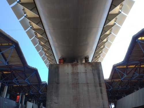 牛深ハイヤ大橋の開通は、平成9年です1997年通行止めして、原因を!海彩館の敷地内にある、橋げたと橋本体を繋ぐ所の 腐食だと!応急処置ですダンバー部分ですかな?歩道は通行できますが(人と自転車)OK大型車両は アウト普通車両は セーフかな?いつまでは? 当分の間です