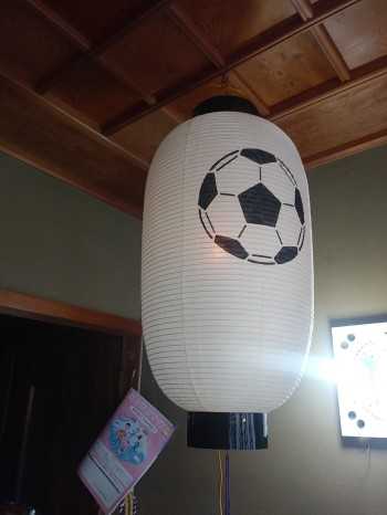 雨のお盆になりました、オードブルの配達へ玄関に、迎え提灯が下がってた普通の家紋ではない、驚きだサ、サッカーボールの家紋だサッカー大好きだった亡き弟へ 兄からあるTVで、家紋は継承するけど、分家したら別の家紋を作っても良いと!まぁ、本家に似てるのが当然だけどサッカーボールか!村長さんの所は、普通の家紋、『平民ですから』家紋を変えようかな?何にする、珈琲カップ やっぱり、ビールだよね!『あんたがえの、家紋はなんな?』『うん、生ビールだよ』