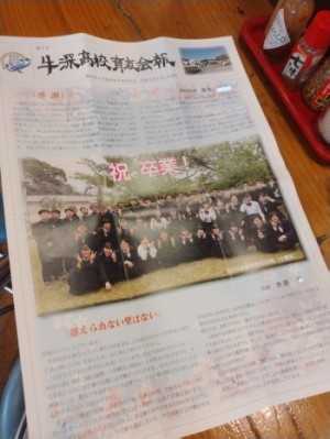 牛深高校の新聞が来た育友会(保護者会)の新聞です卒業生の集合写真です51名の卒業生の学校生活部活の成績、文科系の活躍など総合学科発表会など資格取得状況進学先、専門学校、就職など4月の入学生は前期選抜、後期選抜などあり二次募集が、89名とありました天草の各高校も二次募集あり今日の新聞に春の高校野球大会の組合せあり。牛深、上天草、拓心高校の混成チームで出場します他の郡部も混成チームあり。少子化もあるのか、私学が多いのか?天草の子供たち、頑張ってほしいいですね