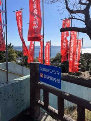 牛深、 遠見山の稲荷神社にて餅投げがありました。姪っ子1号から連絡あり取材をお願いした 標高約100mまつたけ山展望所への階段です新品ののぼり旗に交換されてます(個人名で三千円だと)餅投げ前で式典がおわり、餅投げがあり レジ袋いっぱいに!年男、年女は、餅持参で投げられたそうですお裾分けを9個頂いたら、縁起が悪いから、もう一個で10個につきたて、ホカホカの餅、 さとう醬油でパクパクと、ご馳走さんです最高気温 12.3度、風冷たい