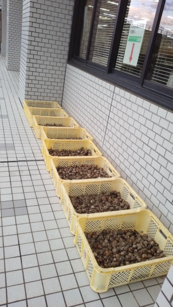 牛深支所帰りに、何、この球根? 天日干し?ニホンスイセンの球根です窓の矢印が『ご自由にお持ち帰り下さい』と白い袋には、お持ち帰りのレジ袋をどうぞ!でも、1枚も無い持って帰って良いのかな?職員さんが、レジ袋を持ってきた。20個ほど、頂いた、まだまだ、たくさんありました日本水仙の球根、欲しい方はどうぞ!支所の横の方にありましたで、水仙の球根、いつ植えるの?