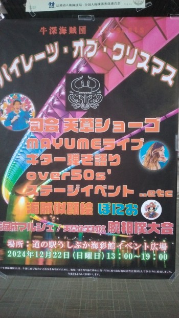 牛深海彩館広場にて牛深海賊団のパイレーツ、オブ、クリスマス22日(日曜日)13時から19時まで寒さが、心配です