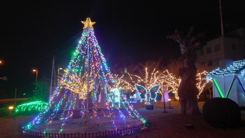 牛深ハイヤ大橋の入り口付近にて牛深の有志が飾り付けをやや風が冷たく、人が居ません帰ろうかと思ったら、 ご近所さんが、私で良ければモデルに!うしろ姿でお願いします?あよ~、年齢制限ね 帰りに、もう一枚 カシャ