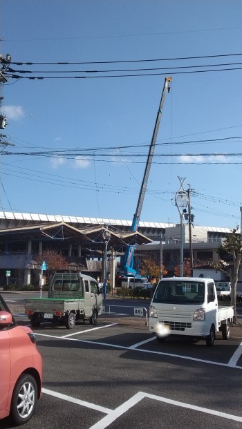牛深海彩館開店して、27年、平成9年4月、オープンしたが、雨、風、台風、直射日光などで傷んでた雨漏りも凄かった、大型クレーン車が来て屋根工事が行われてた