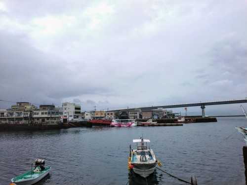 天気予報、雨マークが付いてる牛深の気温は、24.6℃まで上がった14:14が干潮で、上げ潮になってます(15:30頃撮影)潮の動きが!加世浦から静かな港町です今日はハイヤ大橋工事中で通行止め街中は、大型も走る、大変です