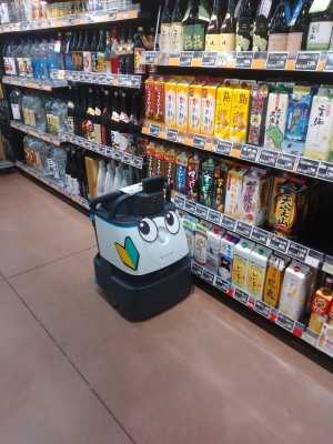 牛深のスーパーにお買い物中にブーブーと音がしたら、機械が勝手に動いてた目が合いました、、すみません、お掃除してます あら、俺が邪魔みたいですね初心者ですか?店内を一台でお掃除です