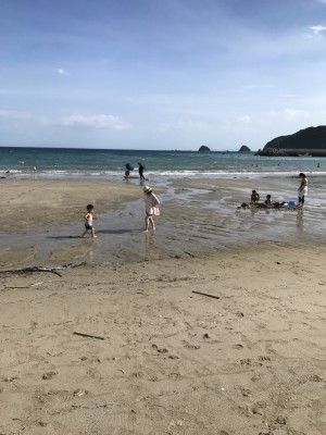 村孫1号は、波打ち際は怖く、コアラ状態です