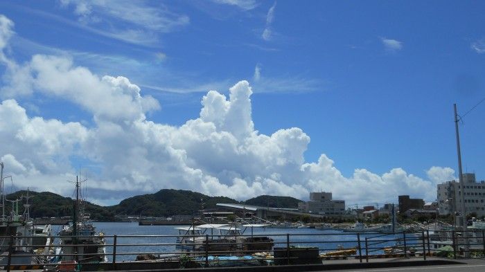 長島の方角は、黒い積乱雲があります