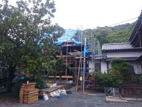 瓦を外し、ブルーシートがかけてあります