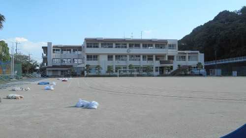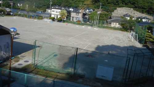 昨年の豪雨被害で運動場まで土砂が流れ込んでました