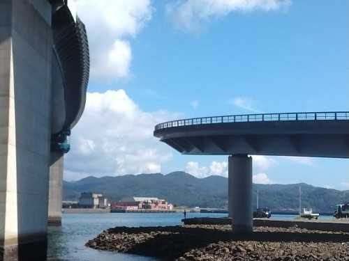 ハイヤ大橋の、クルクル橋の下では、釣り人あり