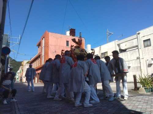​​ 牛深八幡宮、秋の例大祭の獅子舞い