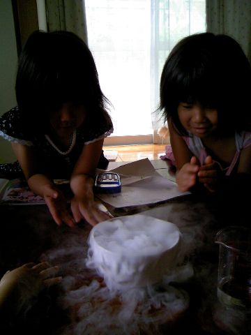 下記の画像は子供達がドライアイスを覗き込んでいるのですが、