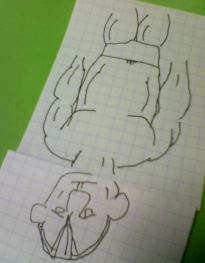 先代のP・プロスナンとはまた違って、ゴツゴツした荒々しさの中に見せる洗練。ワイルド系ボンドは、秘すればこそ…的“隠れセクシー”なストイック野郎です。気になるお面相の方は、ライオンや豹を思わせ、とにかく硝子のような瞳が印象的。ただ、あのボディは…肉団子です。いまひとつ、しなやかさに欠けたのはあの鍛えすぎた体のゆえか???海から上がってくるボンド、ちょっと怖かったです。で、過日アップした 怪しいムービー 、実はこの“海から上がる怖いボンド”を、友人に説明しようと思って、逆さから描いた絵を、つなぐ場面だったのです(この記事に添付した画像が、元ネタ)。逆さから描いたボンド、なかなか似てません?