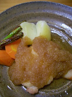 ご近所さんから沢山の玉葱をいただき毎日のように使っているがなかなか減らない。ソースに使ってみた。*♪7月3日晩ご飯♪鶏肉ソテー玉葱ソースと温野菜茄子のきんぴら風*ミキサーで潰した玉葱を炒めて醤油、みりん、酒で和風仕上げ。茄子は焦がさないように胡麻油で炒めてきんぴらの味付けで。お嬢さん、たっぷり召し上がりました。 日記登録して、日付の間違いに気付いても直し方が分からない初心者な私。*♪7月4日晩ご飯♪豚ニラ炒めほうれん草と豆腐のツナマヨ和え*豚ニラ炒めにしたつもりが、「もやしもやし」になってしまったような、、、緑色をとにかく嫌うマイの為にツナマヨ和えにしてみたら、見事完食ヾ(´▽`)ノ♪見ないで食べなさ~い