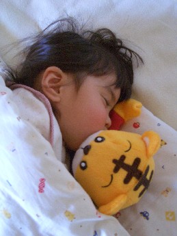 歩き回れるようになったと言えども自分の身長ぐらいの高さまでにしか届かないマイを抱っこしてやるとしきりに指を差し「あっちに行け!こっちに行け!」と指令を出される。触りたい物が山ほど転がっている、ちょっと大人な世界に見えるのだろうか。本当はガラクタなんだけど。左腕でマイを抱き、右手で用事をするようになって数日が経つ。30過ぎの年のせいかようやく筋肉痛に見舞われてきた。それも切れの無い鈍痛が肩まで響く。年は取りたくない(´ヘ`)マイが寝る時はピンクのスヌーピー柄が可愛い子供用毛布と出産準備に「12点で1万円」という超激安で購入したベビー布団を使っている。しかし最近どうやら、その安さに彼女も気付いたのだろうか。深夜3時頃になると毎晩のように自分の布団から抜け出し私の布団に入ってくる行動がよく見られる。はじめは、何度布団を掛け直しても自分の布団から出る様子を掛け過ぎで暑いのだろうかと思っていた。いや、違う。目を瞑ったままこちらへ必ず向かってくる。私の顔面目掛けて!体重9キロの子供の頭とは思えないほどの重さでガンガンぶつけてくる。痛い顔を押さえながら母の布団に入れてやるとスヤスヤ眠り始める。「まだ小さいし、すぐに買い換えるし、安い布団でいいか♪」などと子供を甘く見ていたつけが来たのかしら・・・顔がボコボコにならないうちに、ええ布団買いに行こうヾ(´▽`)ノ♪※マイの体調をご心配いただき、またコメントありがとうございました。
