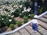 大きな公園中にバラが咲き乱れる有名なスポットが近所にあって、子供が生まれてからバラが咲くこの季節に足を運ぶようになった。去年はベビーカー押して、まだ花なんて興味のない月齢の頃だった。今回は最近買ったママチャリに私とマイが乗り、ここ数年放置されていた錆だらけの昔私が愛用していた自転車に夫が乗り、軽やかに三人で出掛けた。5分咲きとは思えないほど綺麗に咲いてる園内で、写真を撮ったり結婚式のブーケを思い出すだのバラに見入ってる親の側でマイはひたすら階段を上っていたヽ(´o`;とっても綺麗だったのに、、、、6月下旬まで、あと何回行こうかなヾ(´▽`)ノ♪