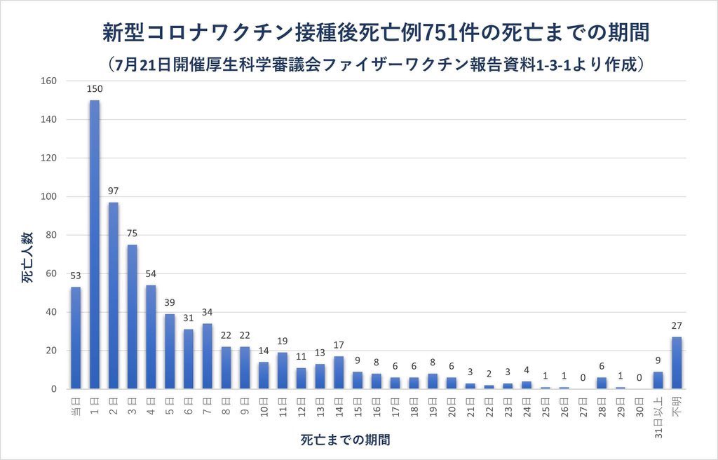 接種後に他の要因で偶然死亡しているのであれば、翌日であろうと20日後であろうと同程度の数になるはずです。
