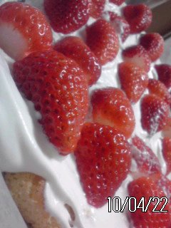 いちごどっさりケーキでお祝いです。