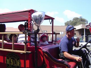 Japanese Cultural Center of Hawai'iで行われた「KODOMO NO HI: KEIKI FUN FEST」へ行って来ました。外にはジャンバジュース、KCドライブインのワッフルドック、たこ焼きなどのフードブースやバウンサーハウス、金魚すくいなどがありました。建物の中では歌や踊りなどの発表やクラフトのコーナーなどがありました。しかし、今回も怪獣トドラーの目的はこちらの消防車です。こちらはモイリイリ地区をぐるっと1周、15分くらいのツアーです。1人$6です。もう何回目?たぶん5,6回は乗ってます。なんとヘルメットは自前!!もう何度も乗っているので今回はトドラー父と怪獣トドラー2人で乗ってきました。しかし、今回はかなり乗り心地が悪かったらしい。運転手さんが下手だったみたいです。怪獣トドラーも文句を言っていましたよ。最近の怪獣トドラー、ますます口が達者になってきて、父母もたじたじです。変なことを言い出さないように気をつけねば。消防車以外にはバウンサーハウスに入り、紙の鯉のぼりを作りました。うろこがいろんな方向を向いた鯉のぼりでした。怪獣トドラーには芸術的なセンスは無いのかも・・・。