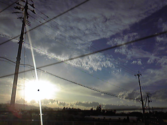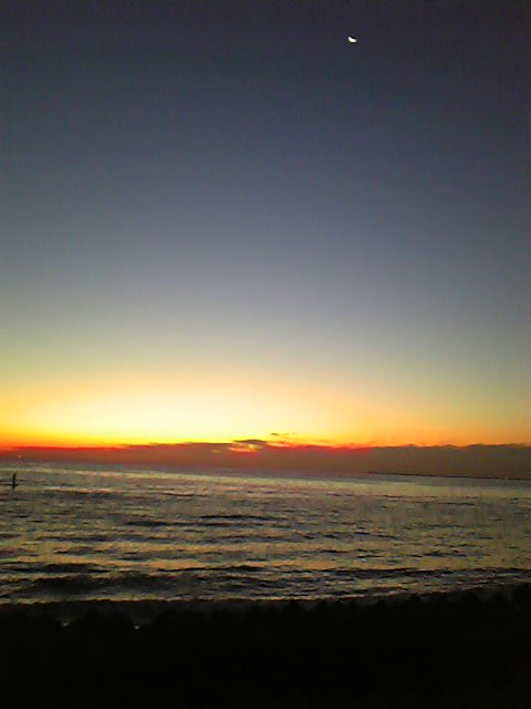 先週オリオン座流星群なる噂があり、イッチョ観てみるか! と思い、夜9時に就寝(-ι_- 寝) 。 起きたのは4時頃(∩.∩) 外に出て、夜空を見上げても...??? 流れ星は何個も見れるのですが、オリオン座流星群は、何処に(#  ̄ー ̄)『・・・』 そこで、眠気も無いのでちょっとドライブ。 海沿いで薄明るくなったトキ携帯でパチリ。 縦でも撮りました。上に見える?月。 携帯で月とか星って、撮るのムズイよ(σ`・∀・)σйё? 自分で光を放って無いからかなー(●´・3・`)ノ.゜.☆
