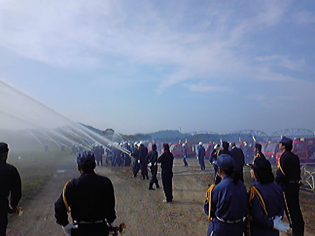 ハレ~ッ?何か寂しいな?皆両脇に居るので失敗撮影です(;⌒▽⌒A 1000人ちかくの参加なんですけど(σ`・∀・)σйё! そして最後!演習の締めくくりにはコレッ!! 実地放水!オイラ達の放水開始ラッパを吹いてから放水。ナカナカの圧巻ですなー(∩.∩) 連合演習は、午前9時から始まり12時位に終わり、ご苦労さん会を午後3時までやりまして..... 家に帰ってみたら りき が お気に入りの椅子で寝てたので、パチリ。変なカッコウだね(*^▽^*)o.♪ その後。 かなり酔っ払ったオイラは、眠りに就きました(-ι_- 寝)
