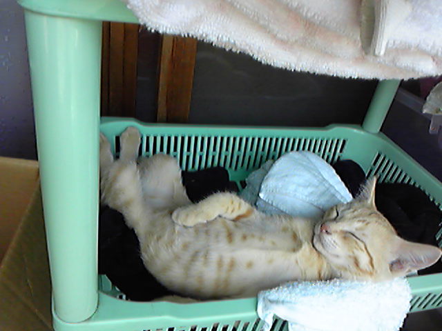 21日、敬老の日ですね。巷では、 シルバーウィークとも。何でも横文字にするのは日本人の悪い所じゃないでしょうか? などと、老人でも無く中年のオイラがとらりき共々ゴロゴロしつつ、ただ家の中で一人...と、ニ匹。 りき、籠の中で爆睡中!(∩.∩) ドレイとシモベ達は、ドレイの義姉達と買い物。と、極楽湯に行ったのでした。多分夕食も食べて来ることだろう。 天気も良い。風もイイ感じに有る。おかげで洗濯物も良く乾き、仕方なく洗濯物を取り込むオイラ'`ィ(´∀`∩ オイラも猫みたく、のん気に人生の1/3を寝て暮したい。 ...しかし、とらはベランダで寝てるが まろんとらんは何処に行ったのか? まあ、イイケド。 晩飯には、帰って来るか。