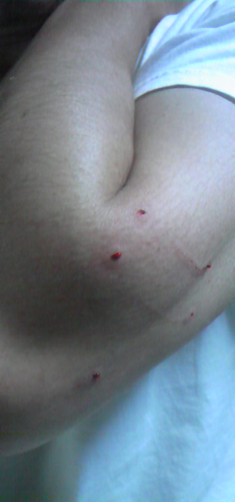 もぎれそうだった小指!! 一時はオイラも心配でしたが... あ、「白いあんよ」が写ってました・゜゜・(*/ロ\*)・゜゜・。 こんなに綺麗に治りました(*σ゚ω゚)σYO ! そして 腕の傷も.... これも、イヤンこれも「あんよ」と「ぱんちい」写ってるし!∑(゜Д゜;) ほとんど治ってます。 ....治癒力、強いもんで。 そんだけデ━v(o´ з`o)━スゥ♪