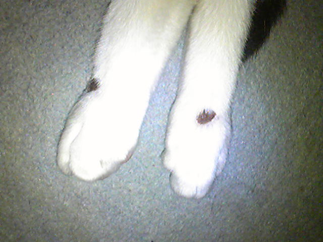 らん です。 オイラの家にきて2ヶ月ちょっと経ちました(∩.∩) 続いて... とら です。 これも2ヶ月位トキの画像です。 違いが解かります?色がちょっとね(;⌒▽⌒A 足の色と肉球。 らん は肉球、真っ黒!∑(゜Д゜;)