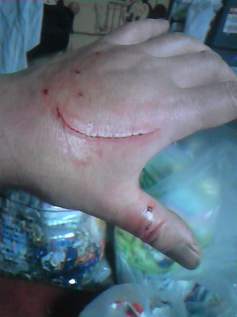 え~、先日の事です。とらにやられました。小指と薬指。 小指がもぎれるかと思いました。 ....でも仕方が無かったんです。 体を洗おうと思いぼでぇをシャンプーしていたトキ! ガブッ!!!って....。 無意識のうちに咬まれた手で叩いてました。 ....でも仕方が無かったんです。 咬まれた手から血が飛び散りました。 タライのお湯が赤く染まりました。 でも仕方が無かったんです.....。 手の傷がいくら増えても、 どんなにとらがオイラを嫌っても どんなにとらがオイラを咬んでも........ でも、仕方が無いんです。 そんな とら 好きだからー(*>▽<*)ゞ