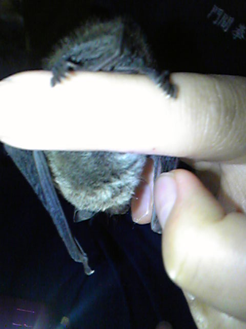これは、5月11日の出来事デ━v(o´ з`o)━スゥ♪ シモベ2号(♂中2)が、学校の体育館の裏にて発見! 持って来てしまいました!∑(゜Д゜;) 皆は、物珍しい珍客に蝙蝠だけに「こーちゃん」 。 などと名前を付けていました。 思い出しますね~。実はσ´Å`o)オイラも小学校のトキ プールの更衣室の裏で滑って?落っこちた母蝙蝠にしがみ付いていた 子供蝙蝠を持ち帰ってしまいましたネ~。やっぱオイラの息子(;⌒▽⌒A 結構デカイ!!経験的に蝙蝠は飼育はムズイッ!!! 翌日シモベ2号は、体育館に戻しました。