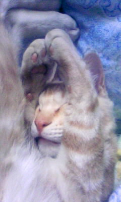 さっき りき が帰ってきて早速 らん と格闘!元気だね。(;⌒▽⌒A ってか、ドンナ形にナッテルノカーー? ダンボールの中での格闘では、「ボコボコーッ」!という音とともにダンボールがポルター・ガイストのように ((((;゜Д゜))) ひゃーーー! 後は疲れて....... カーペットの上でオヤスミ。 ン?ナンカ、らん と りき が浮いて見える(‐゛‐;) 不思議~。