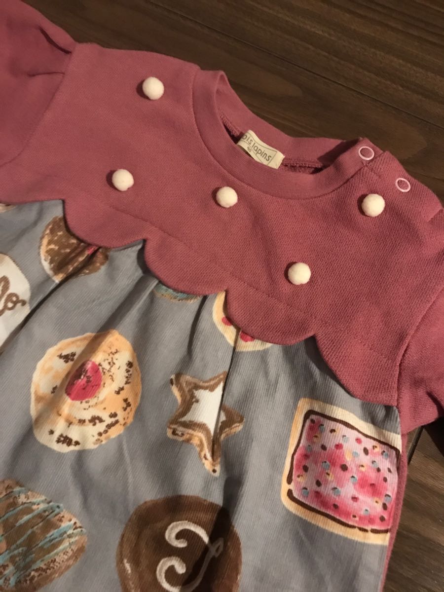 30%になった実店舗で購入しました。 ネットで見たときからかわいいなーと思ってたけど、実物は思ったよりもずっとかわいくて、定価で買ってもよかったかも。 店舗には80、90しかなくて、来年着られるかわからないけど、90を買いました。 もしももしも他の店舗で100以上をみつけたら買っちゃうかも。 ★トロワラパン お菓子柄 ワンピース 定価5292円 → 30%オフ 3704円 【2018秋冬】trois Lapins(トロワ ラパン) お菓子柄シリーズの切り替えのワンピース(80cm、90cm) ワンピース以外のお菓子柄シリーズ チュニック 80.90 100以上 スカート 80.90 100以上 トレーナー 80.90 100以上 このトレーナーもお菓子柄シリーズらしく、スカートと合わせるといいと店員さんがすすめてくれました。花子はお腹がですぎてて、スカートはかせると腰履きになってしまうので…もう少し痩せたらかな( ̄▽ ̄;)