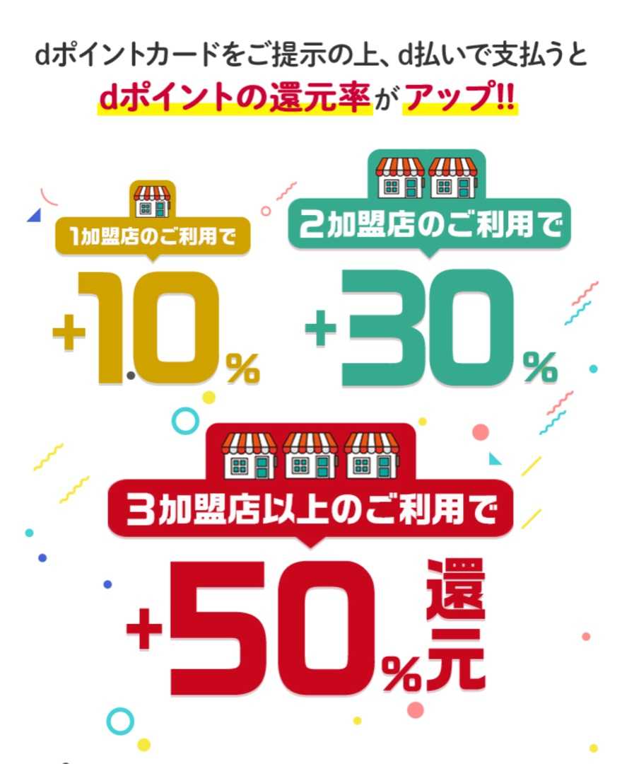 (d払いHPより) 詳細はこちら→★ エントリーお忘れなく! 上限2000p つまり、3店舗で合計4000円購入するのが一番お得。 対象店舗 一部 ファミリーマート ローソン ガスト かっぱ寿司 しゃぶ葉 はま寿司 ミスタードーナツ モスバーガー 夢庵 エディオン ノジマ NEXCO中日本 ファミリーマートとローソン+αでクリアできそうかな。
