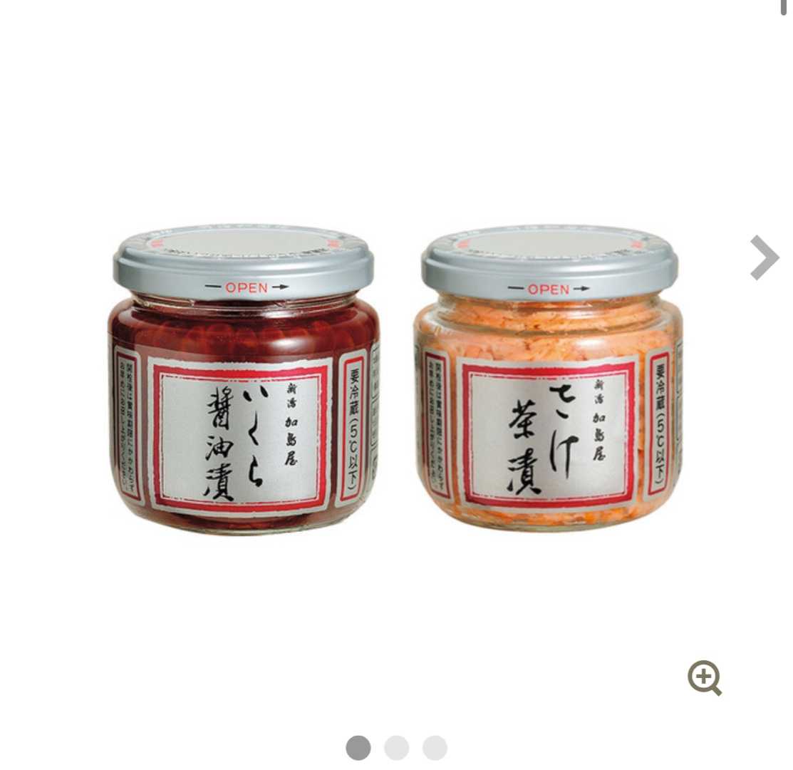 白クマ太郎さん、情報ありがとうございます! 昨年、omni7でたまたまみつけた加島屋の福袋、実家の両親が気に入りまして。 また買ってほしいと頼まれたけど、先日探した時は発売前だった?完売してたのか?見つけられず… 実家に3セット、うちに3セット注文しました❣️ 2セットずつしか注文できなくて、送料300円なので 1セットにつき税込、送料込み3350円です! 定価は… いくら醤油漬(中)は170g入り、税込3132円 さけ茶漬(中)は140g入り、税込1944円 袋入りのさけ茶漬けは100g入り、税込1350円 つまり、いくら醤油漬を買うとさけ茶漬がついてくる!ってことですね❣️これはお得‼️ ちなみに、ふるさと納税にも加島屋の瓶詰めセットがあると友人が教えてくれました。→★ 20000円の納税で7128円のセット、いいですよね🤗