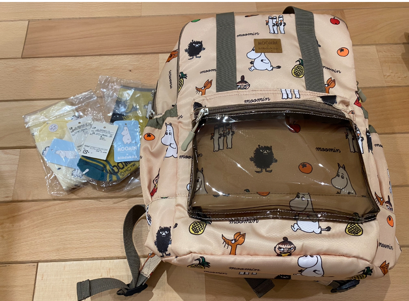 kladskapのムーミンシリーズアウトレットでリュックは50%オフ、靴下70%オフ★kladskap【MOOMIN】総柄リュック8690円→50% 4345円→20% 3476円靴下は500円弱クレードスコープ(kladskap)MOOMIN/ニョロニョロリュック型ポシェットクレードスコープ(kladskap)MOOMIN/キャラクターショルダーバッグ