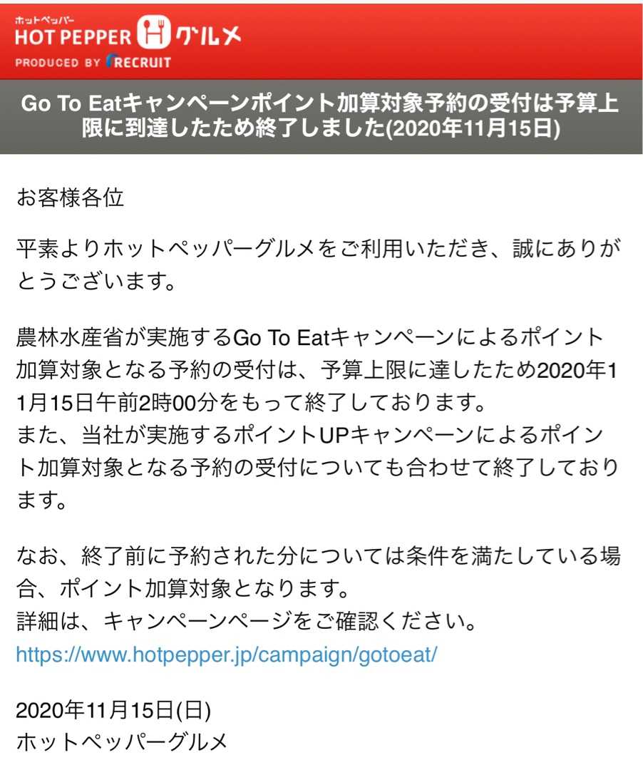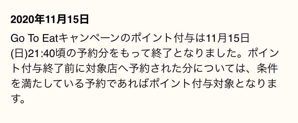 GO TO EATのポイント付与がぞくぞくと終了してます💦